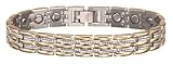 New for 2003! Polished stainless steel and polished 18K gold plating make this design popular with men and ladies! Want lots of magnets? This design has lots of links and a 1200 gauss magnet in each one!Our Price : $74.99