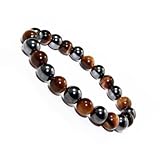 This auction is for a super strength stylish magnetic hematite bracelet. The gun metal black magnetic hematite round beads and tiger's eye accent bead coming together to create this sensational bracelet. Multi-strand elastic string makes this beauty fit you perfectly. Each gun metal black magnetic hematite round bead measures approx.1800 gauss power. It measure 7.5" in Length and 1/3" in Width(Round bead: 8mm) and a perfect gift item for any occasionsList Price : $45.95