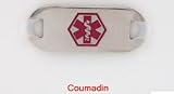 Medical Alert Stainless ID TAG for Bracelet ~COUMADIN Features